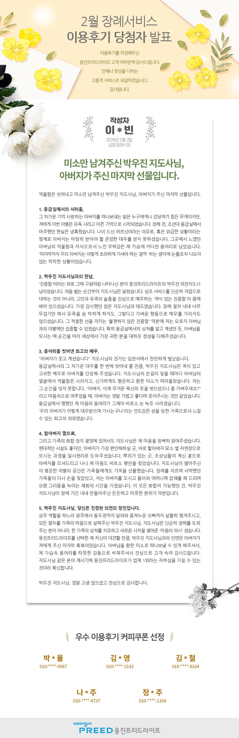 [발표] 2026년 2월 장례서비스 우수 이용후기 선정